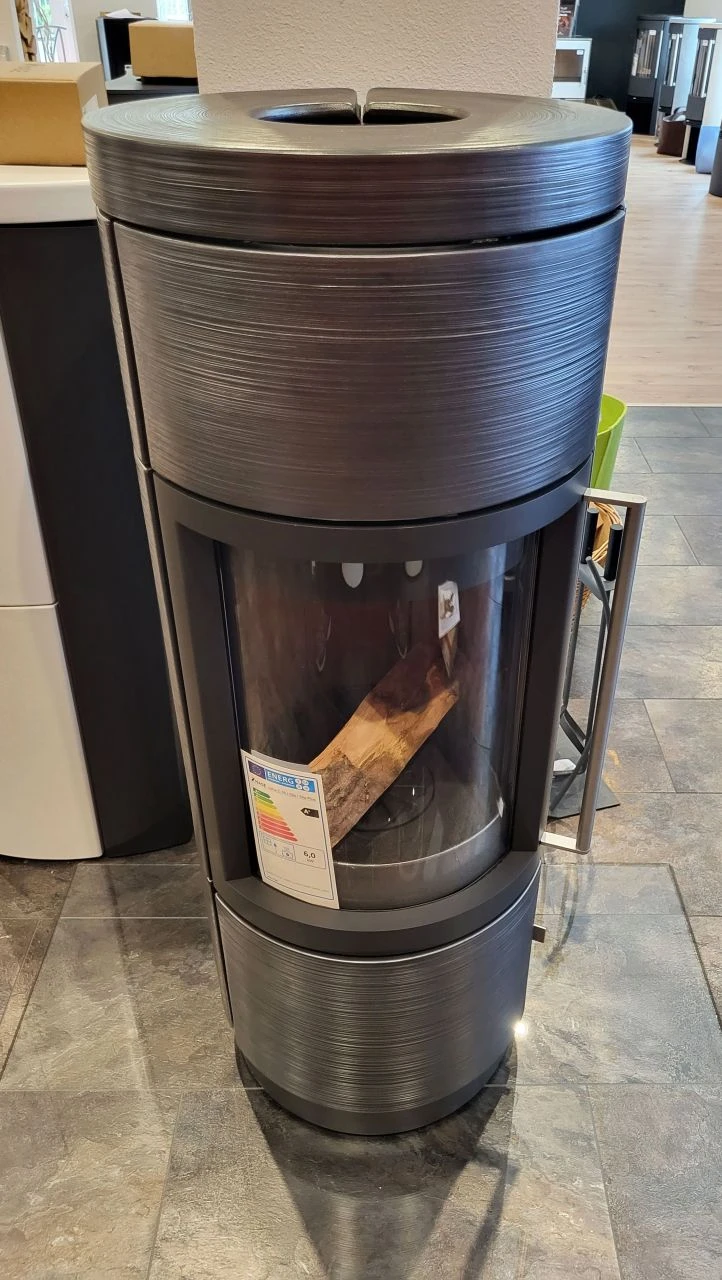 Hase Lima Ausstellungsstück 1 | Kaminofen mit Keramik Linientextur in meteorit | schwarz lackiert | 6 kW