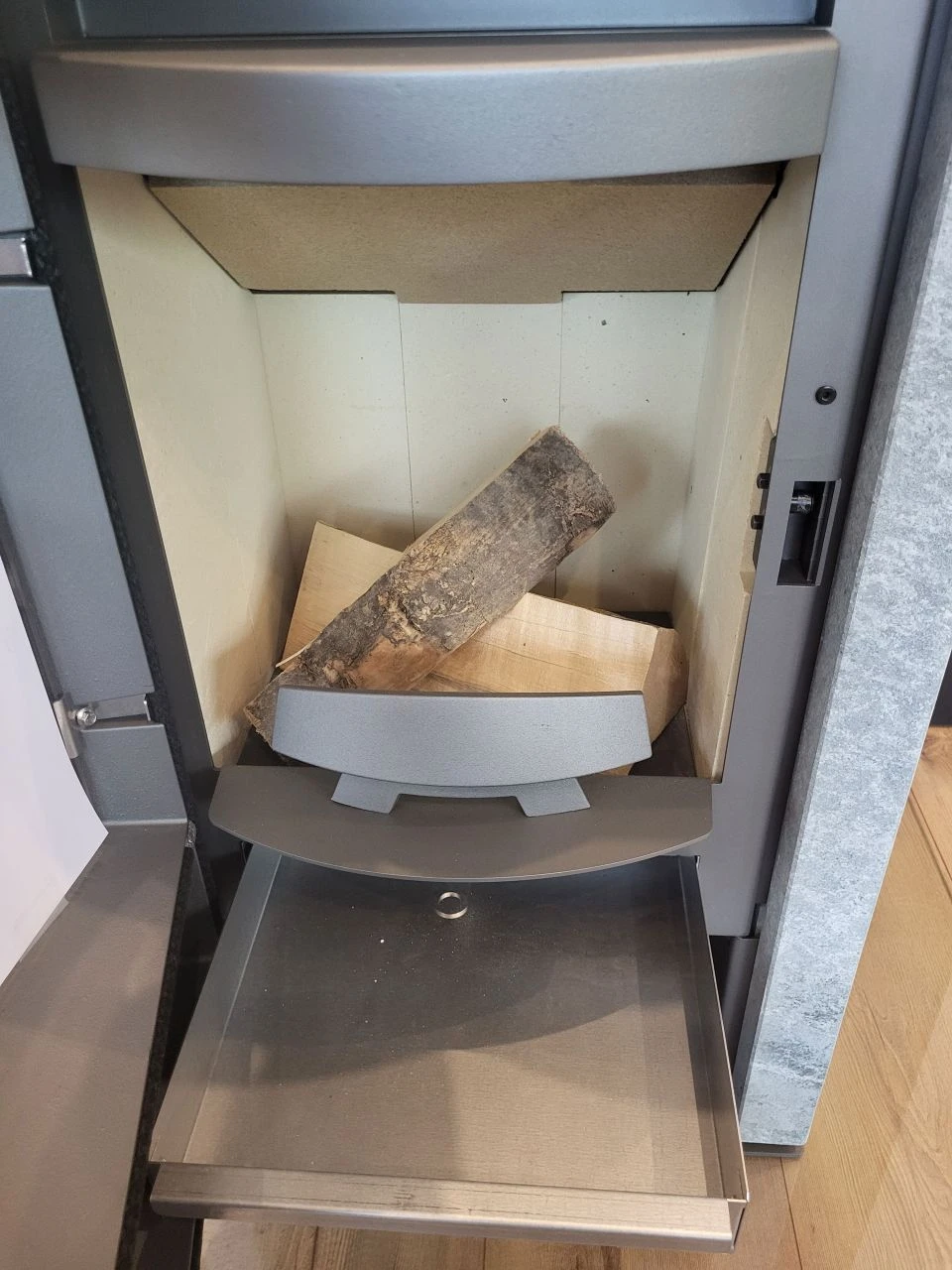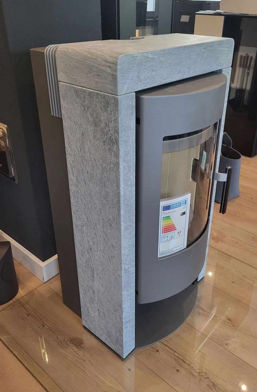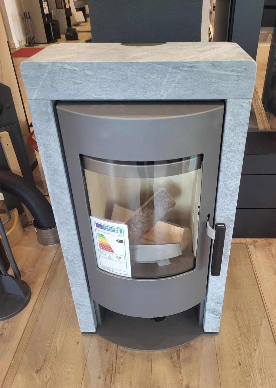 - Rika Fox II Kaminofen Ausstellungsstück in Speckstein und einem grau-metallic lackiertem Korpus kaufen | ofenersatzteileshop.de